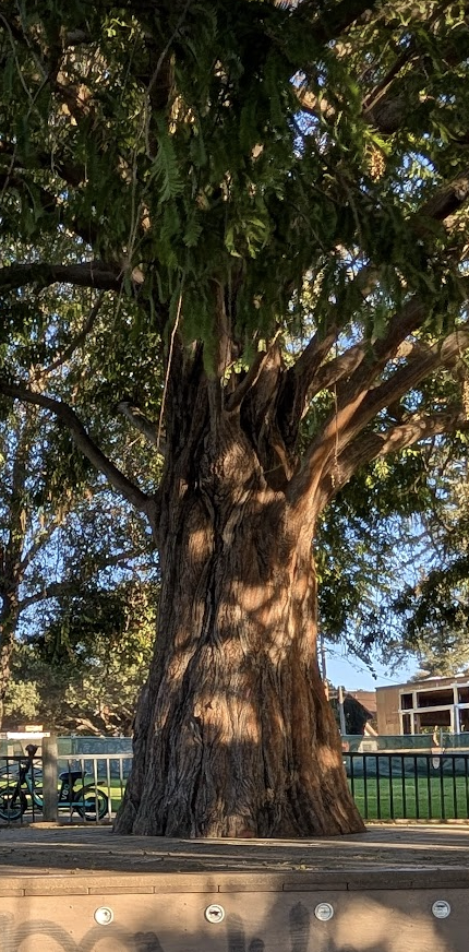 People around the playground have been coming here a long time, clearly; it is a real Berkeley-ass park, a big lawn with lots of lawn-sitters, frisbee people, and so on. The sort of park whose emptiness is weird. And it’s the sort of park that’s been like it is a long time—no trace of the emptiness of a gentrification park, the tree is tall and exactly in its maturity—even while everything is being re-made and made new: there’s a new “clubhouse” being built, lots of the equipment is new, and it’s the sort of Berkeley-ass park where you can look in most directions and see the ways that Berkeley is changing. It’s the park where I and my now-wife got randomly caught being a couple in public by some friends of ours,—before we’d told anyone in our circle that we were a couple—and it’s one of those very funny memories, how we all just said “oh, hi!” and talked as if we hadn’t just accidentally revealed to them that we were now, secretly, but clearly, a couple. That was a lot of years ago, long before the babies, long before President Trump was a thing that seemed like it would be a thing. Back then, I’m sure that our eyes didn’t even notice the playground; when you don’t have kids, a playground especially one as contained, as tucked in, and as neat as this one just melts into the backdrop.